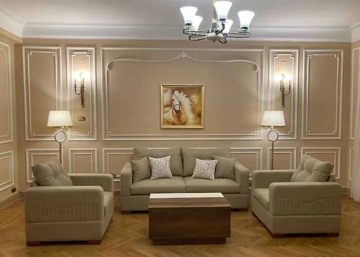 The 220 m² Garden-City Apartment Cairo is a great place to stay in the Garden City district, about a 25-minute walk from Aisha Fahmy Palace. Staying in this 2-bedroom apartment, nestled within sight of Felucca boat ride, guests can relax on a terrace.